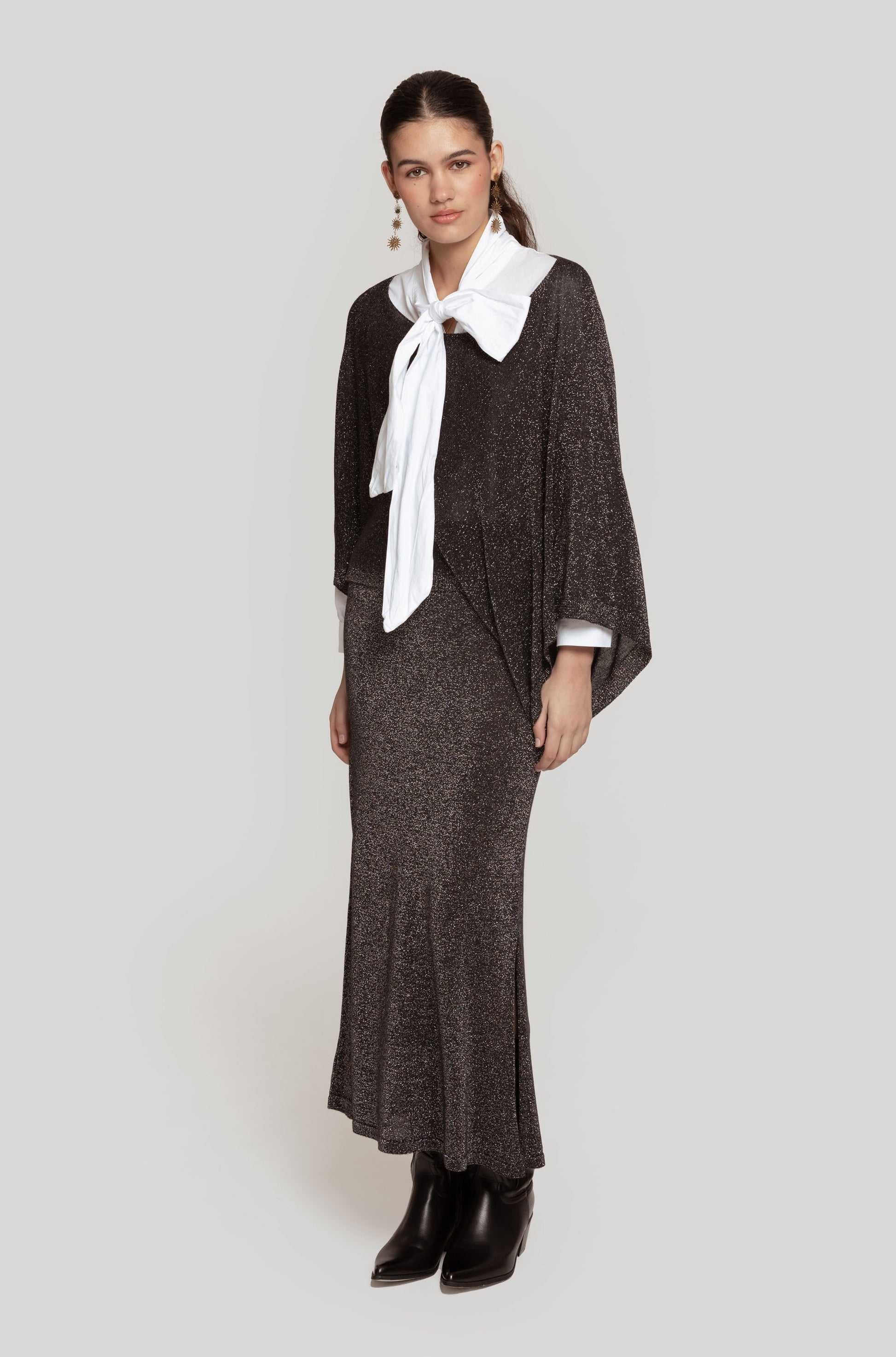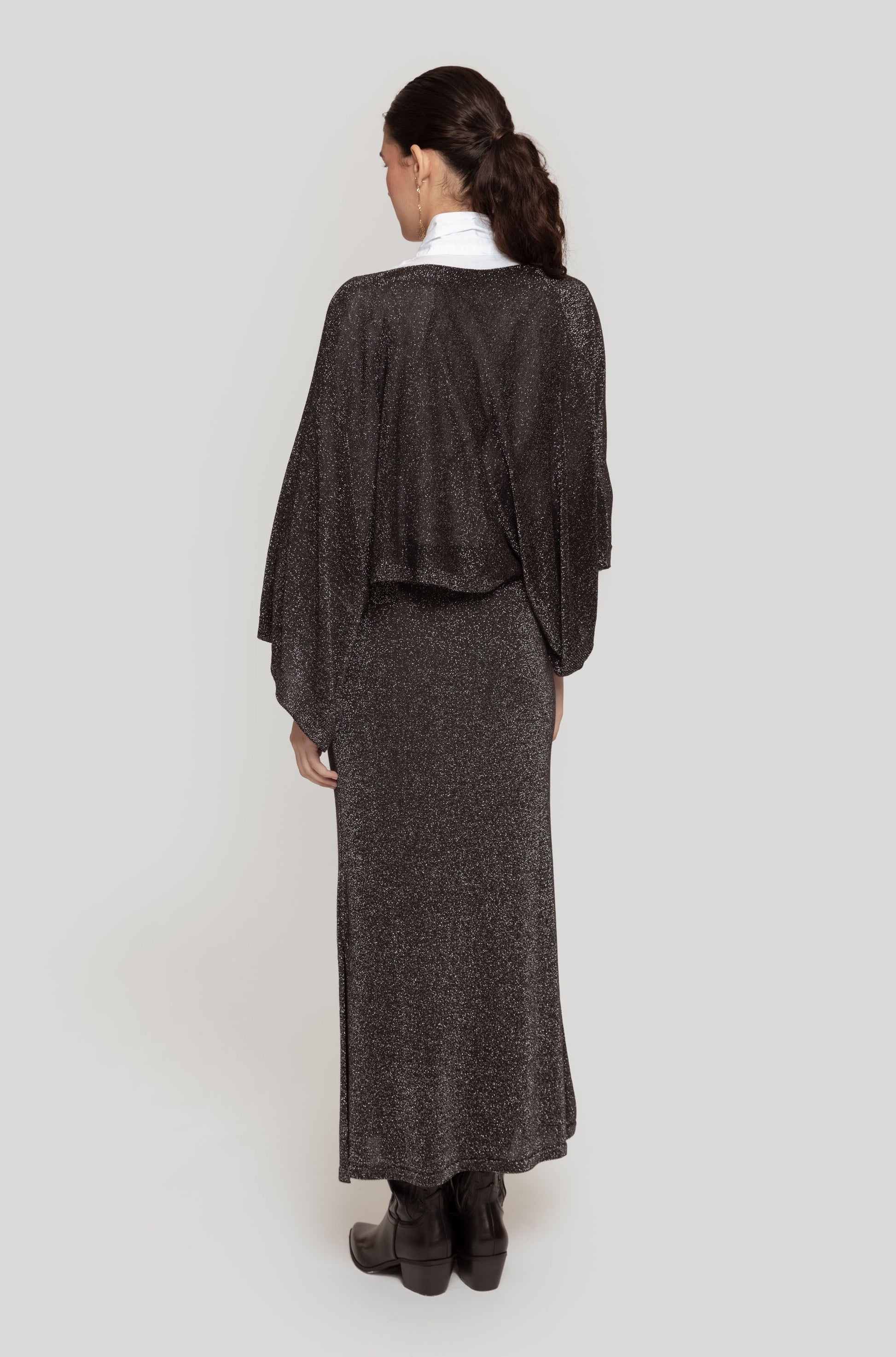La Falda Luz Serena es una prenda versátil con un toque de sofisticación. Su tejido de punto fino con sutil brillo aporta elegancia, mientras que su diseño recto y cintura elástica garantizan un ajuste cómodo y favorecedor. Perfecta para looks casuales o formales con un aire refinado.