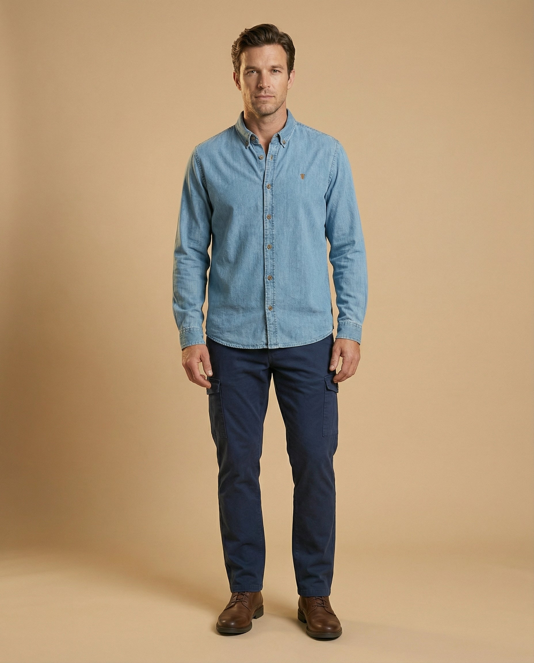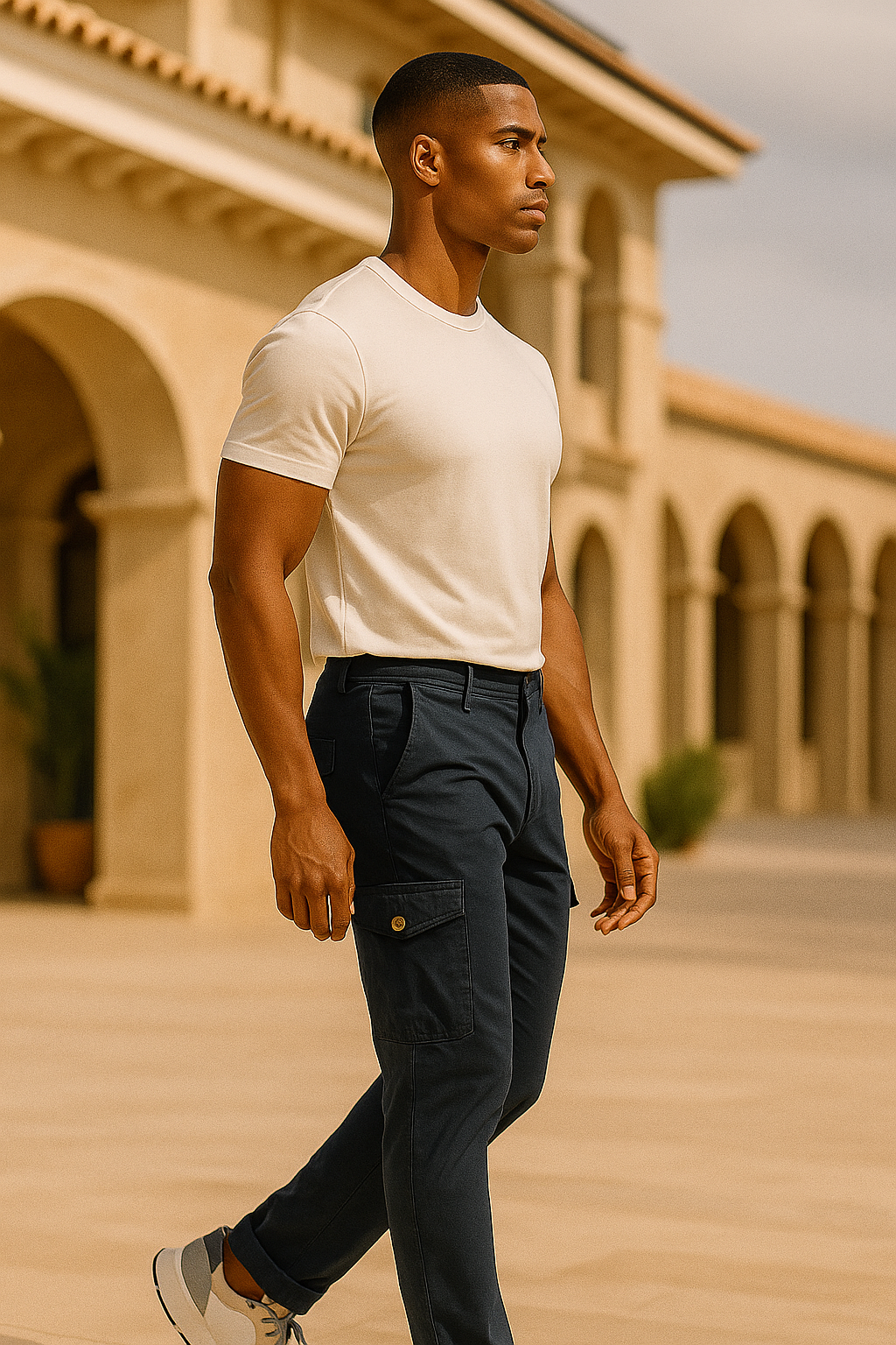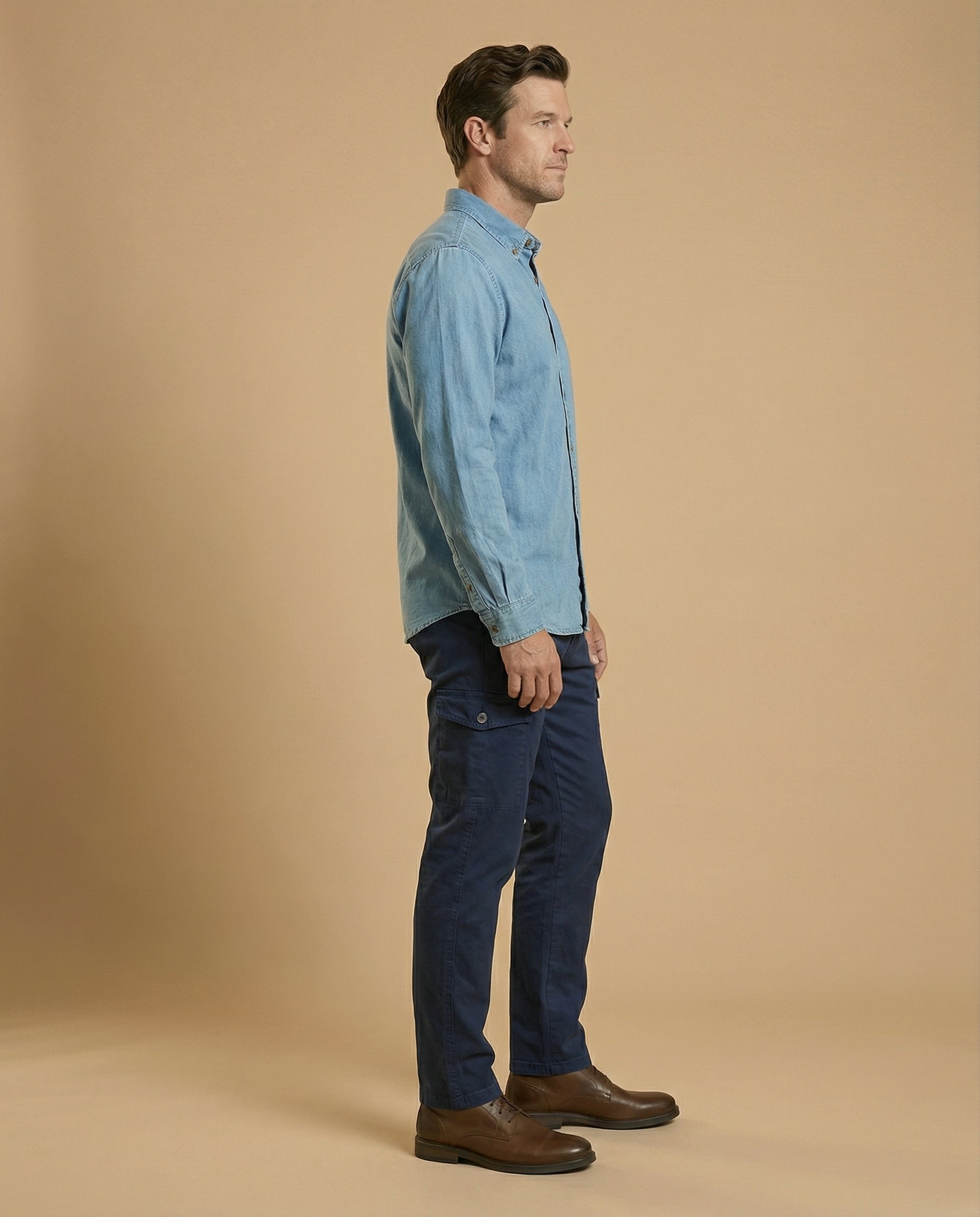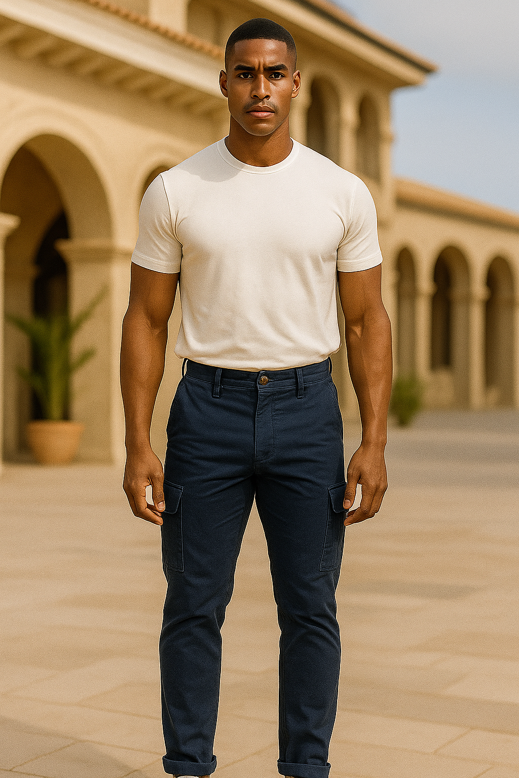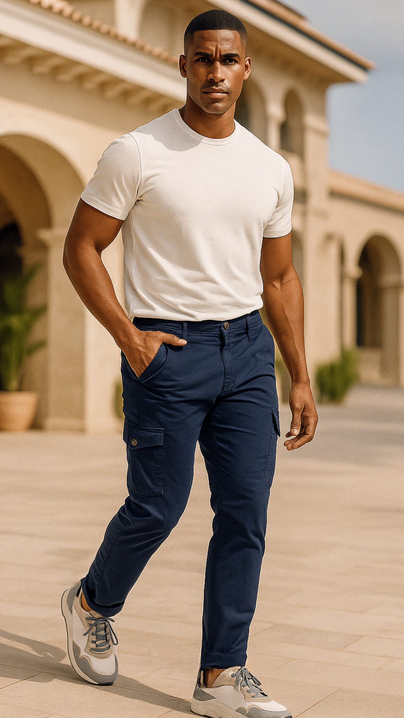 - Diseño Cargo: Combina el estilo clásico del pantalón chino con la funcionalidad de los bolsillos cargo, perfectos para llevar tus pertenencias esenciales sin perder el estilo.